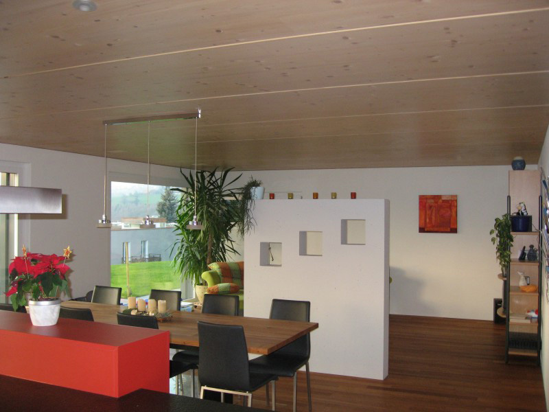Je nach Wunsch der Bauherren ist es möglich eine gipsfasergebundene Platte zu montieren. Diese Platte wird anschließend gespachtelt und geschliffen ehe der Maler oder die Bauherren den Innenräumen die farblichen Akzente geben.