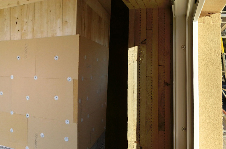 Unser Wärmedämmverbundsystem ist natürlich ebenfalls aus Holz. Aus sogenannten Holzweichfaserdämmplatten.