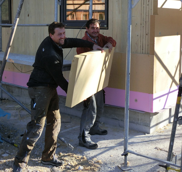 ermöglicht es uns, Holzhäuser in diffusionsoffener Bauweise ohne Folien in den Wänden, mit natürlichem Raumklima, hohem Flächengewicht für Wärmespeicher und Schallschutz und sehr guten Brandschutzeigenschaften zu bauen.